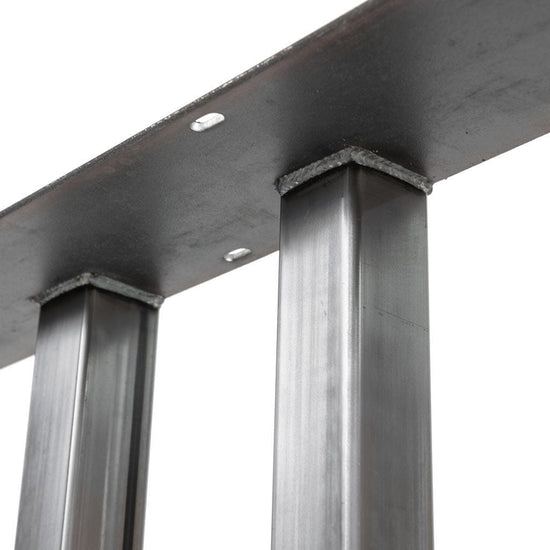 The Duet - 2 x 2 recycled tube steel brings together a table leg like no other in our offering.  With centralized, vertical tube welded to a horizontal base, now there is room for legs swinging in and out of your table design.  Perfect for your next dining table, desk or console build.  Choose from 9 finishes at custom height and length. LEGS SOLD SEPARATELY Semi Exact